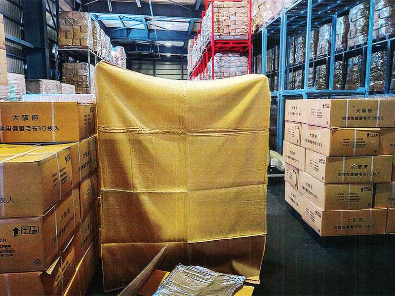 大阪府が防災用毛布を20年経過により除去することとなり、計8万枚のうち当社が 5,000枚(500箱)を確保いたしました。