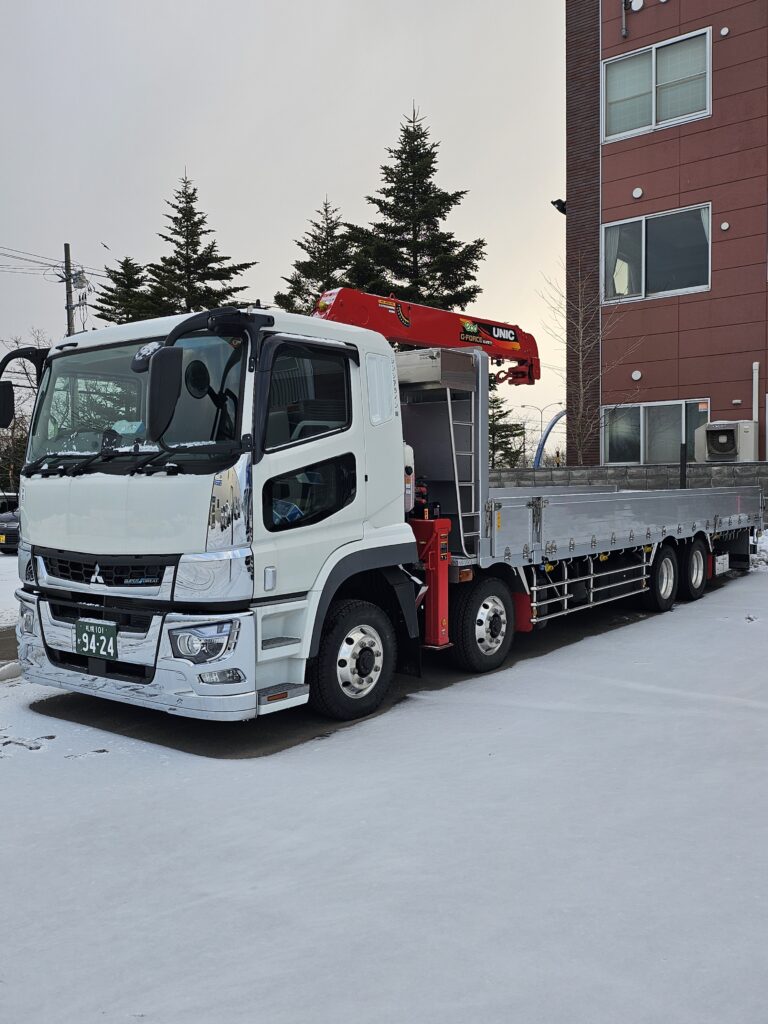 10tユニック車両を導入しました 2025年12月22日 最終更新日時 : 2025年12月22日 web-master649 ●メーカー:三菱 10tユニック●車種:スーパーグレート●車両長さ:1.200cm●車両積載量:12.700Kg●車両幅:250cm●車両高さ:341cm